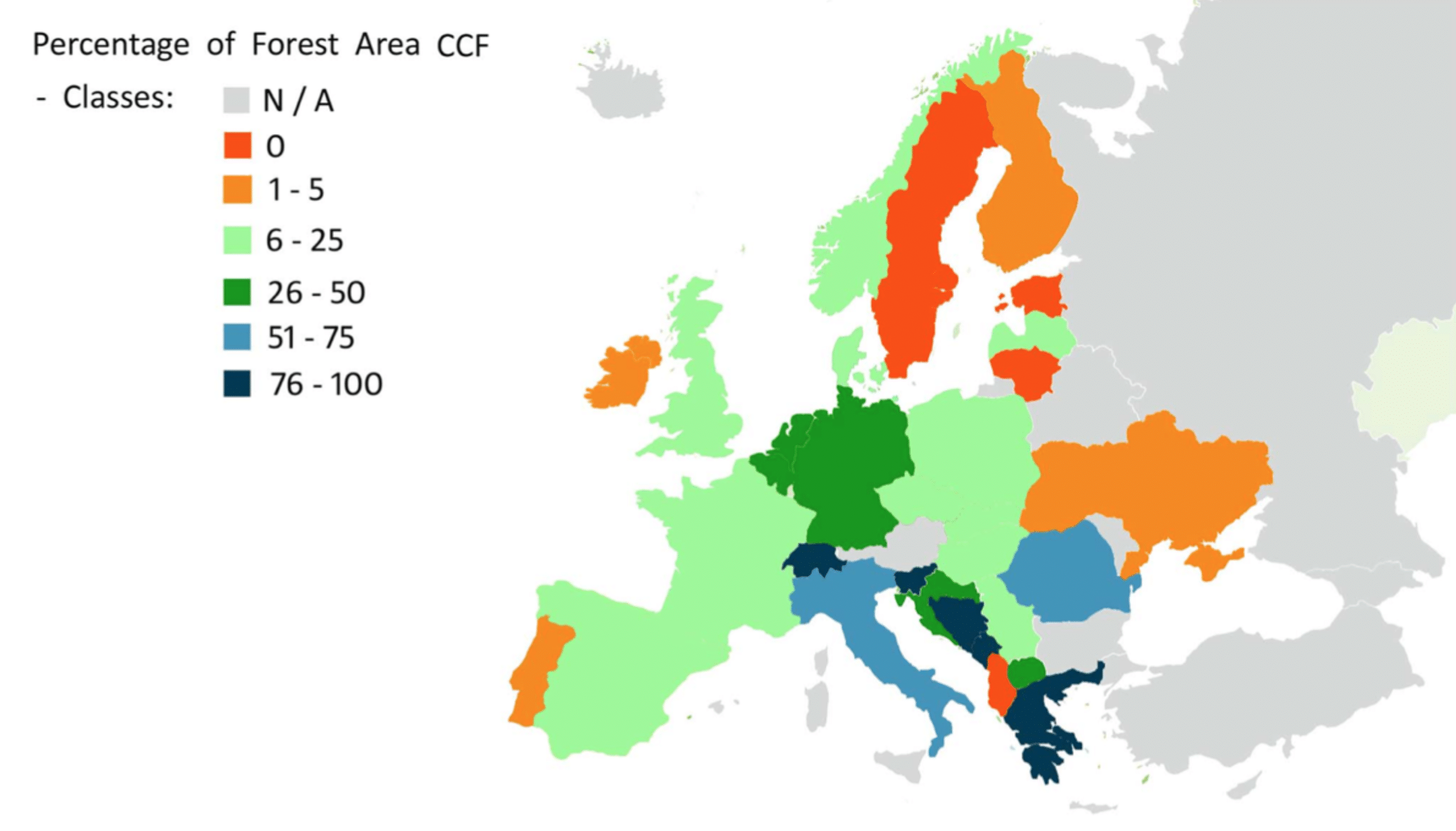 While little data has been collected on CCF, a research paper published in Forestry in August 2021 (cited in sources below) highlights the knowledge gaps and perceived obstacles that have prevented CCF from being more widely adopted. The report estimates that only some 22% to 30% of forests in Europe to be managed through CCF, although in some countries like Slovenia it is the norm, and in several countries while state forests continue to be managed conventionally, a majority of private forests have moved over to CCF. The report highlights that one obstacle to wider adoption of CCF is that subsidies have favoured RFM.