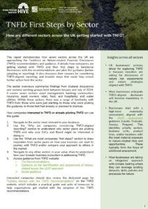 - UK businesses’ primary driver for exploring TNFD is because investors are asking for disclosures of nature risk assessments and nature strategies aligned with TNFD.